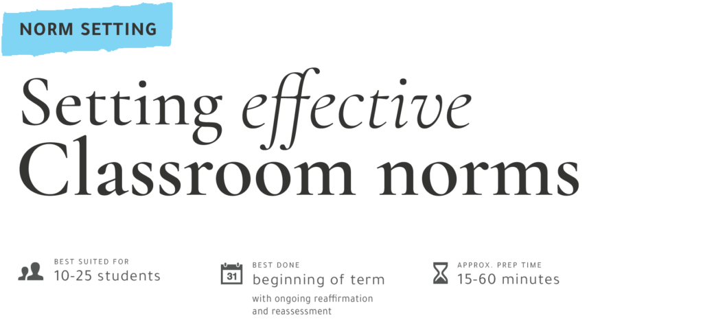 This handout may be used by instructors and students alike. It provides guidance for generating effective classroom norms, along with examples.